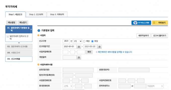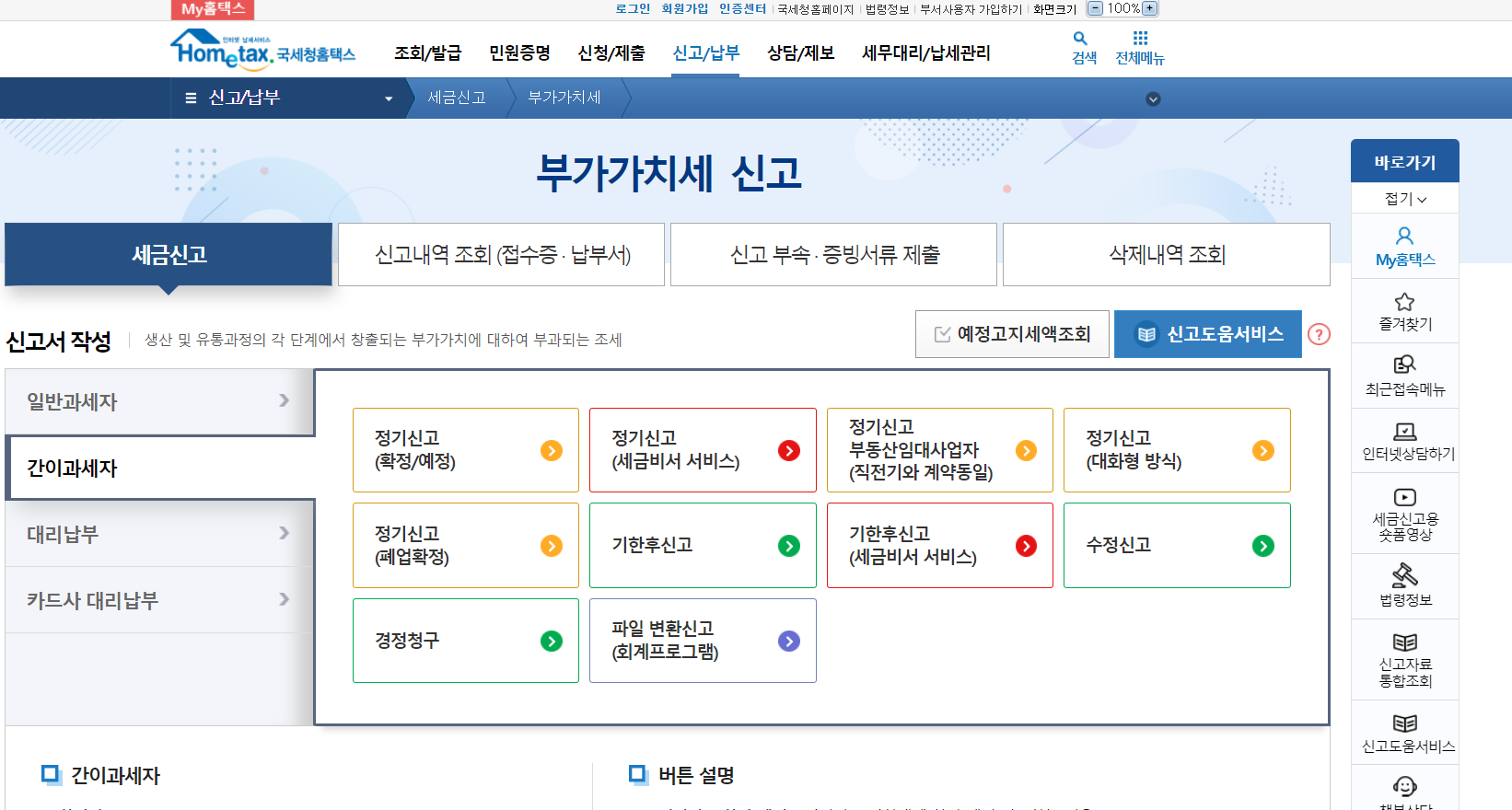 | 확정신고 | 7.1~12.31 | 다음해 1.1~1.25 | 법인/개인 일반사업자 | ||