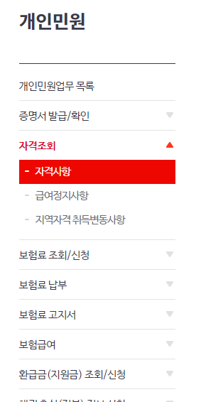 ③ 개인민원업무 목록에서 자격조회>자격사항을 선택합니다.