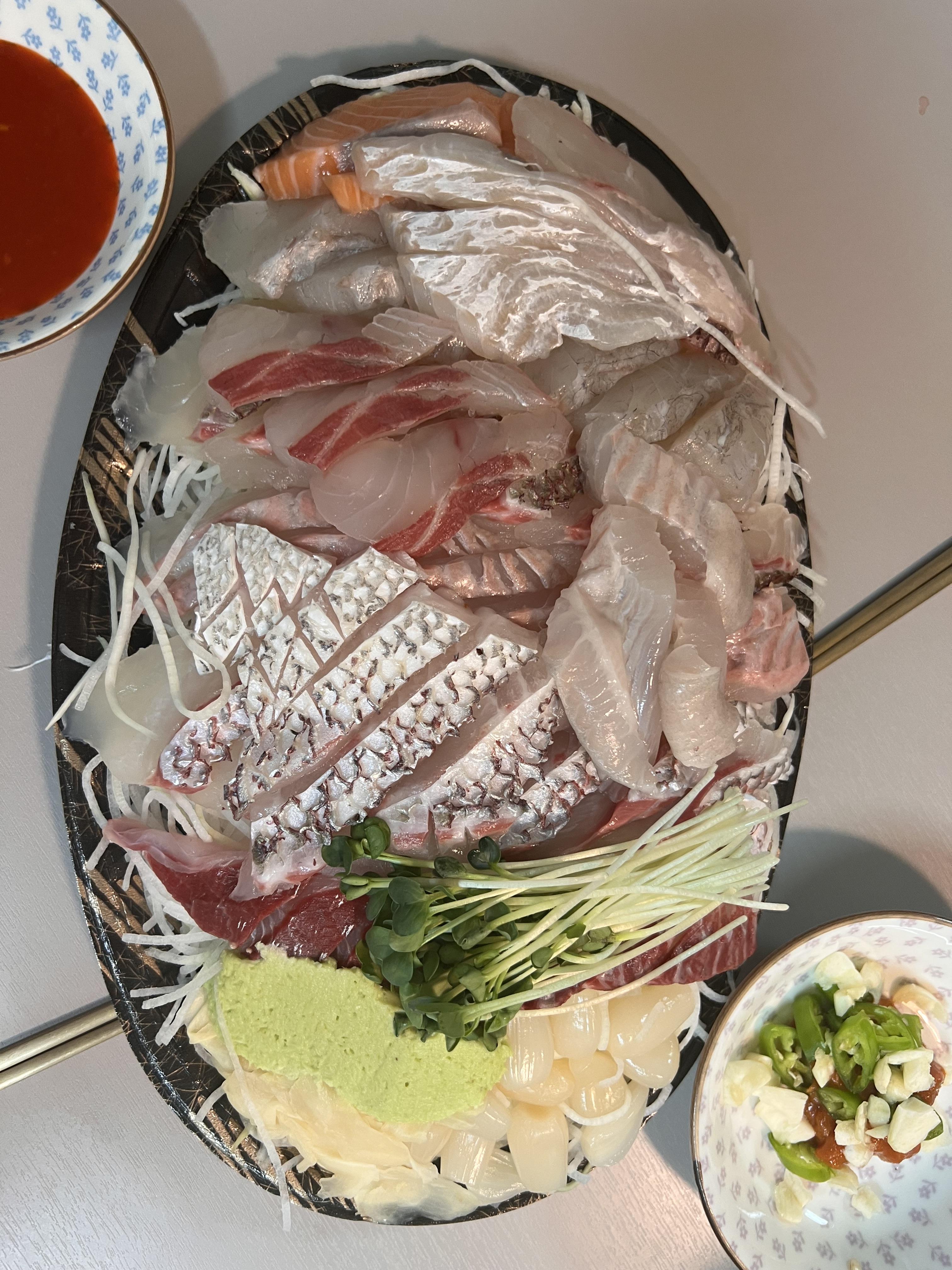 회가 정말 두툼하죠? 사진만 봐도 정말 군침도는 비쥬얼이네요. 예전에 노량진 수산시장을 가면 광어, 돔, 이렇게 특정 회감을 선택해서 여기저기 돌아다니며 가격 비교하고 흥정하는게 당연했는데, 이제는 정해진 저렴한 가격에 푸짐하고 질 좋은 회를 간편하게 먹을 수 있다는게 저희 세대해 정말 안성맞춤 마케팅 공략이 아닐까 싶습니다.