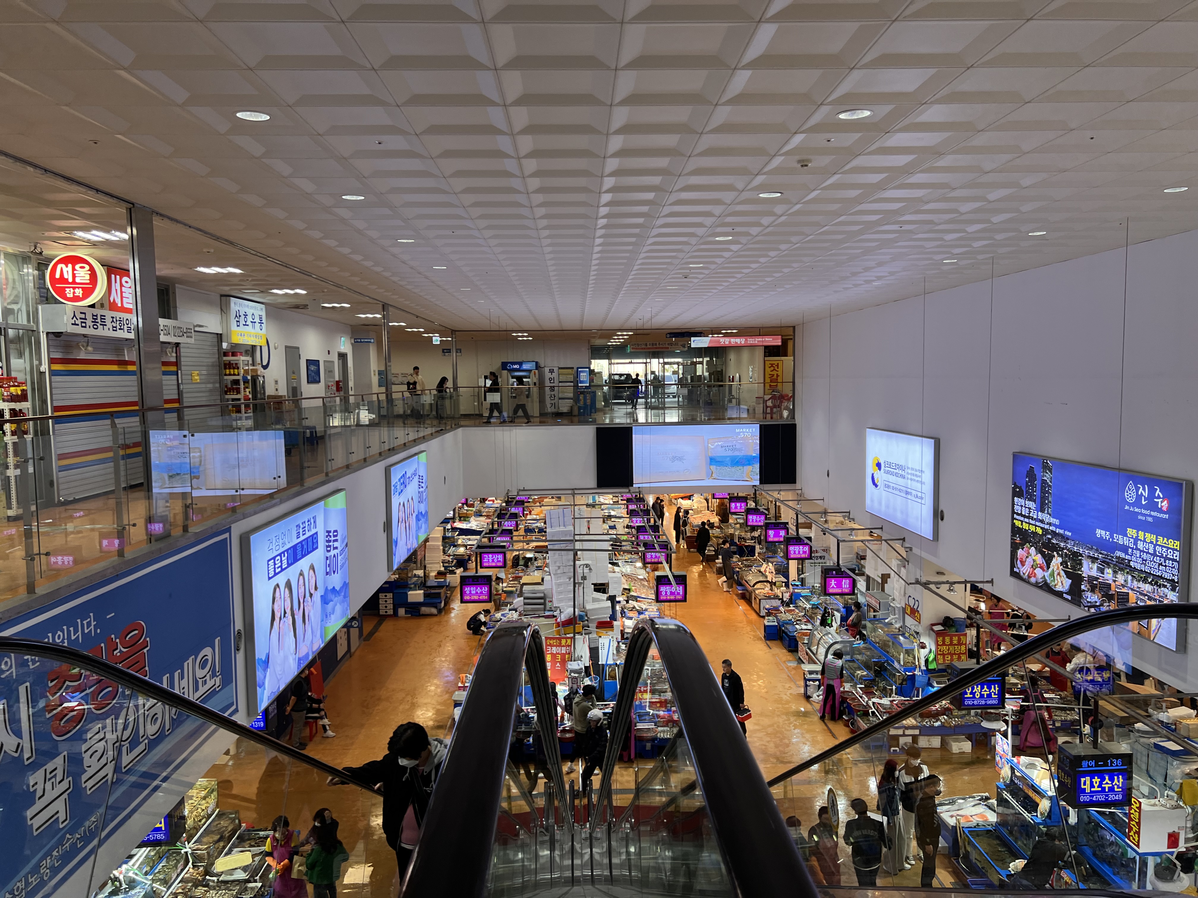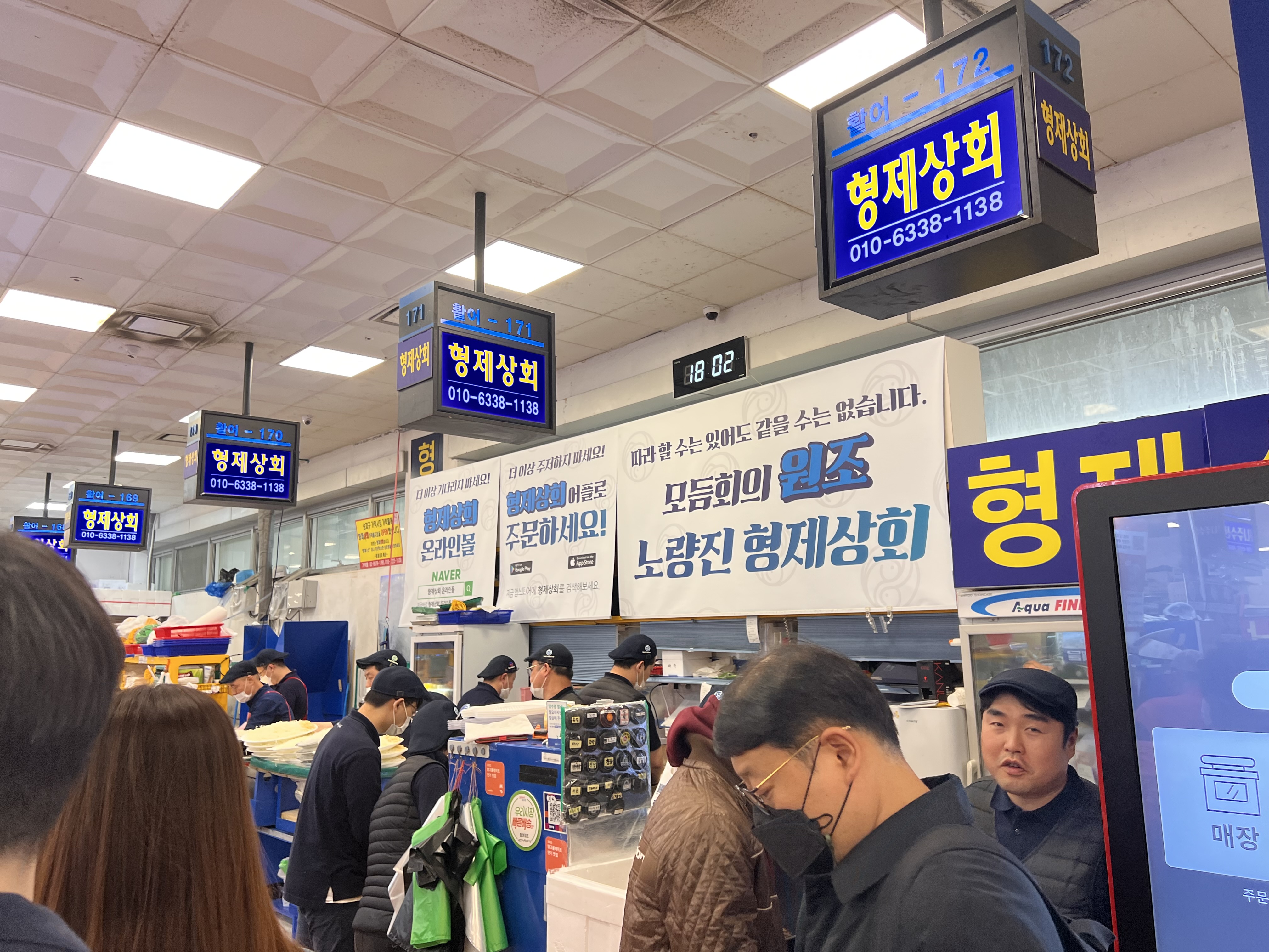 노량진 형제상회의 위치를 먼저 설명드리면 위 사진과 같이 주차장에서 들어와 에스컬레이터를 타고 내려가서 우측 방향으로 쭉 가시면 나옵니다. 구역번호는 '활어 - 170~172' 이구요.