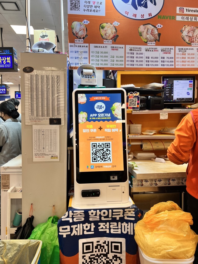 역시 앞에 있는 키오스크를 이용하여 주문하면 되구요. 어렵지 않게 되어 있습니다. 아! 어플도 있긴 합니다!