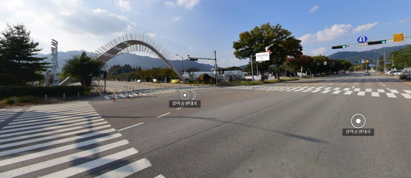 이 곳은 동문주차장 앞에 있는 삼거리에서 대공원역 6번출구 방향이 있는데요.