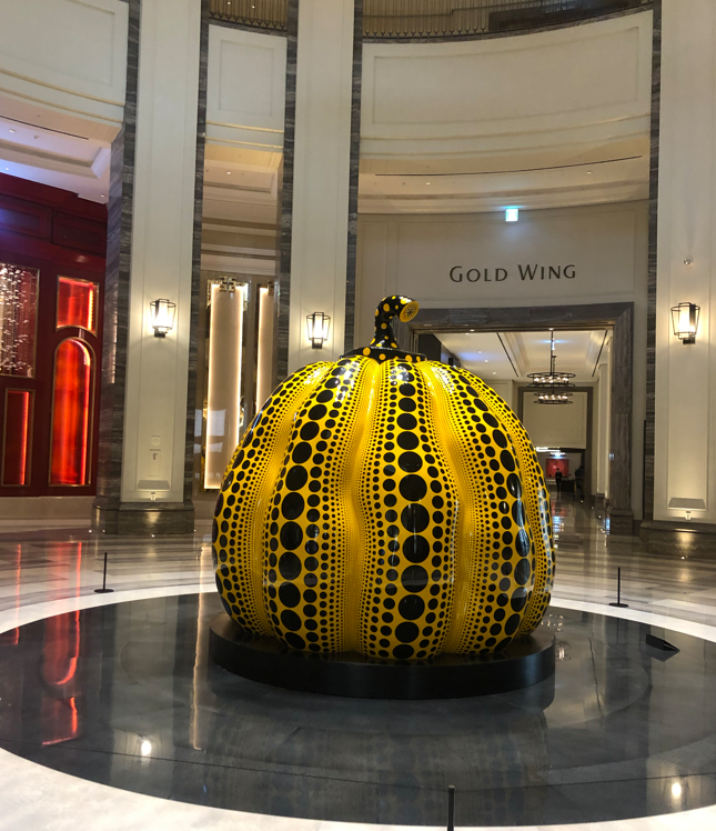 무엇보다 한번쯤은 SNS에서 보셨을법ㅂ한 파라다이스시티 로비에 설치된 쿠마사 야요이의 작품인 'Great Gignatic Pumkin' 동상은 꼭 보셔야 합니다. 사진으로만 본 느낌과, 실제 작품 앞에서 본 느낌은 사뭇 다릅니다. 정말 예술이구나 느낌이 날 정도입니다. 이 작품은 작가의 고통과 치유 그리고 확장의 욕망 등 감동적인 사연이 담겨 있다고 합니다.