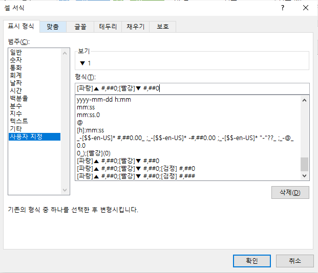 [파랑]▲ #,##0;[빨강]▼ #,##0