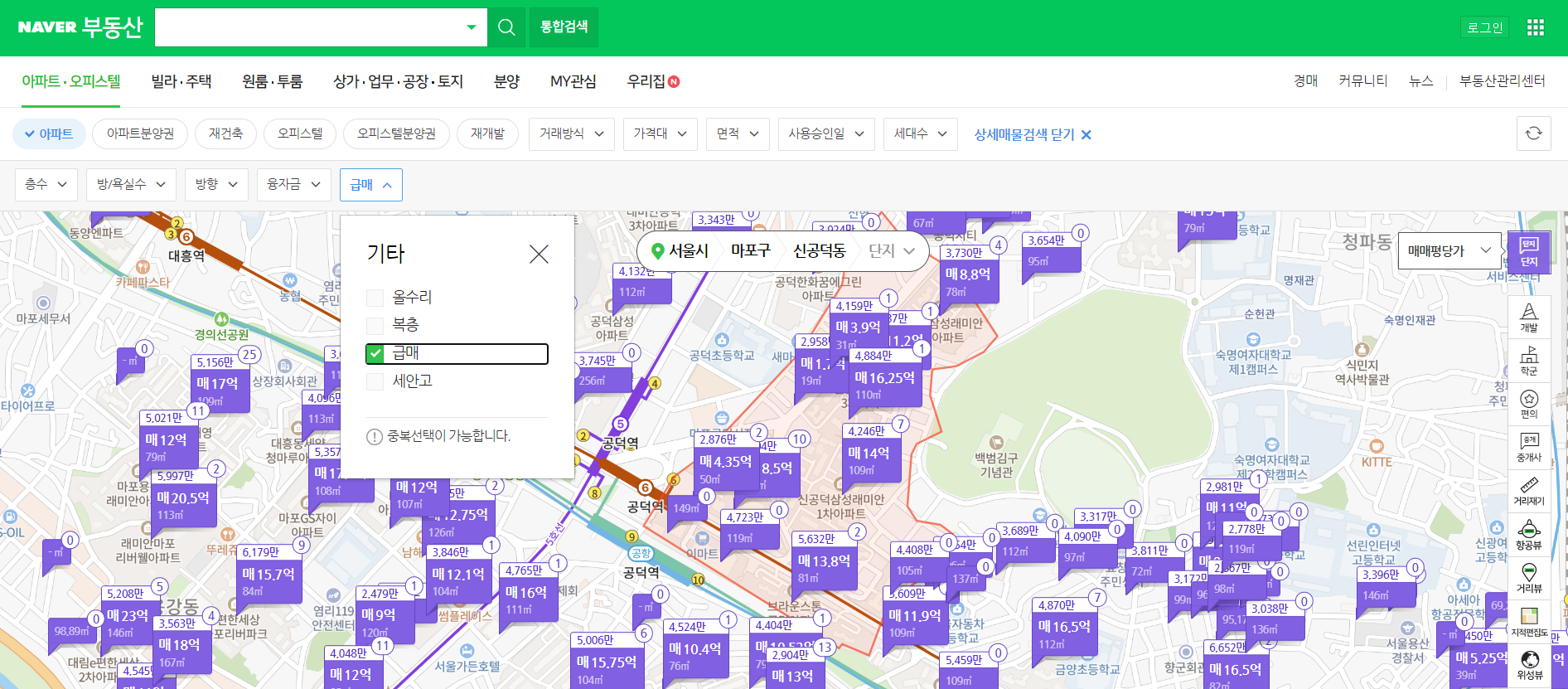 첫번째, 네이버 부동산에서 급매로 필터링하여 확인하라.